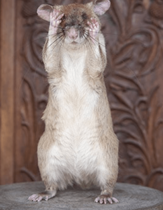 In 2020, Magawa, an African Giant Pouched Rat, won the highest honor bestowed upon an animal, the PDSA Gold Medal for bravery and dedication to duty. Magawa, a HeroRat, sniffs out landmines in former war-torn countries.
