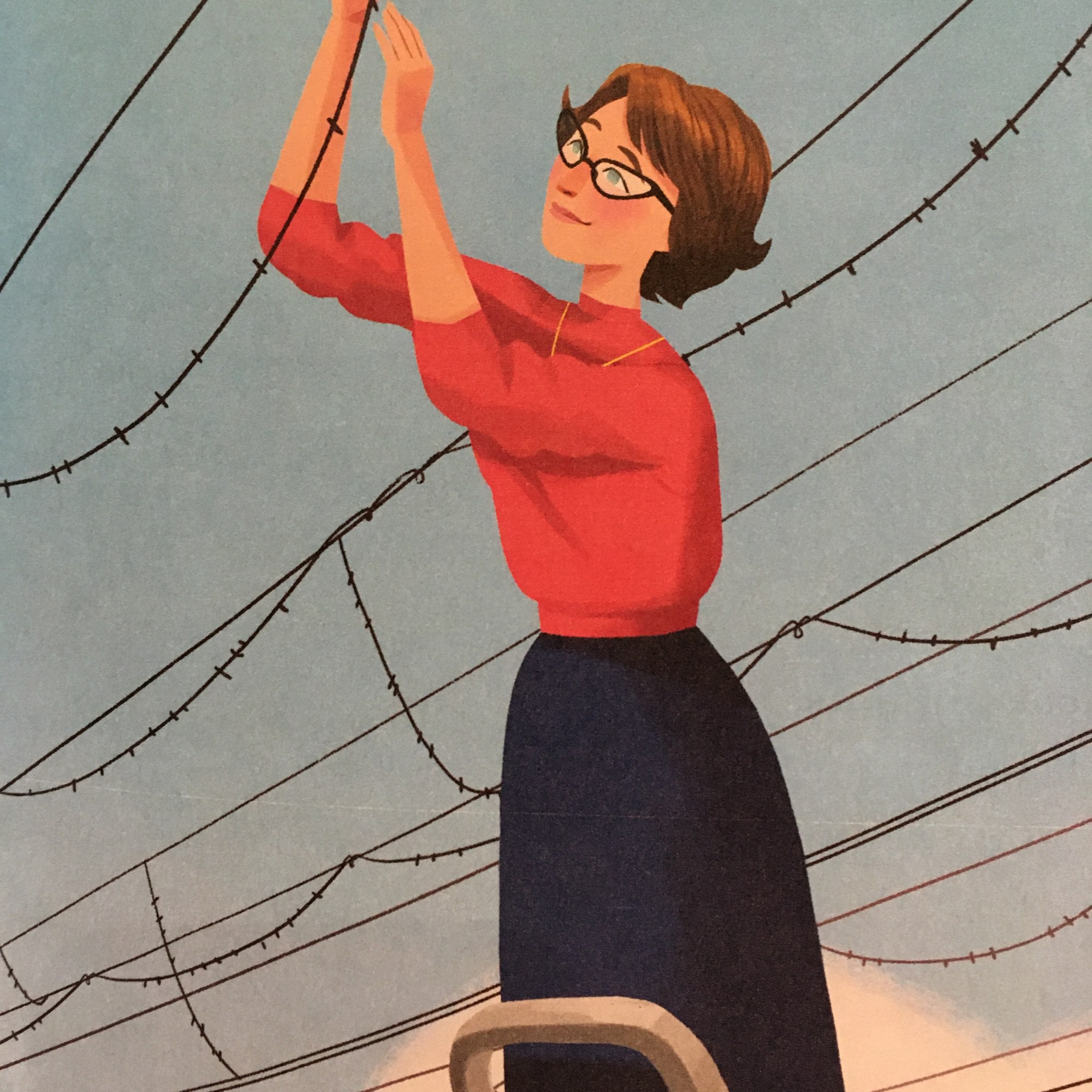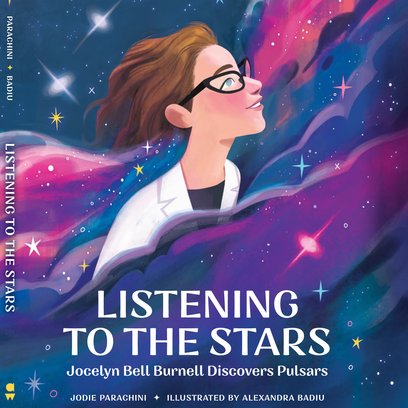 “Does the galaxy have a sound?” asks the first line of this elegant biography. “Is it loud and full of thunderous booms? Soft murmurings, whooshing whispers?” Though written in prose, the narrative has a poetic sensibility, building a suspenseful read-aloud from the events of Burnell’s life. First having to fight her way into “the boys’ class” in the 1950s so she could learn physics, then later working to mount acres upon acres of wires to help construct a telescope, the young Jocelyn depicted exudes curiosity and enthusiasm. A showstopper of a spread celebrates the radio telescope’s 1967 completion: Precise technical lines appear in silhouette against a dusky, ethereal sky. Text and pictures work together to explain how a pulsing sound wave comes from a neutron star—a discovery that Burnell made after analyzing “three miles of paper.” Well-chosen similes illuminate fundamental concepts, backed by Badiu’s rich, celestial blues and purples. Frank discussion of the sexism Burnell faced leads into a hopeful note about her efforts to support young women in astronomy. Backmatter provides plain-language scientific definitions, a contextualizing author’s note, and recommended reading on women in physics. Burnell is depicted as White, all of her colleagues and mentors appear to be White men, and just one of her students (circa 1974) has brown skin.